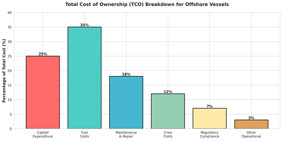 Total Cost of Ownership represents the comprehensive financial assessment of vessel operation over its entire lifespan. TCO encompasses capital expenditure, fuel costs, maintenance and repair expenses, crew costs, regulatory compliance investments, carbon taxes and emissions credits, and decommissioning costs. For a typical offshore support vessel with a 25-year operational life, fuel costs represent approximately 35% of total ownership cost, maintenance and repair costs account for 18%, capital expenditure comprises 25%, and crew costs contribute 12%. The remaining 10% encompasses regulatory compliance, insurance, and miscellaneous operational expenses.